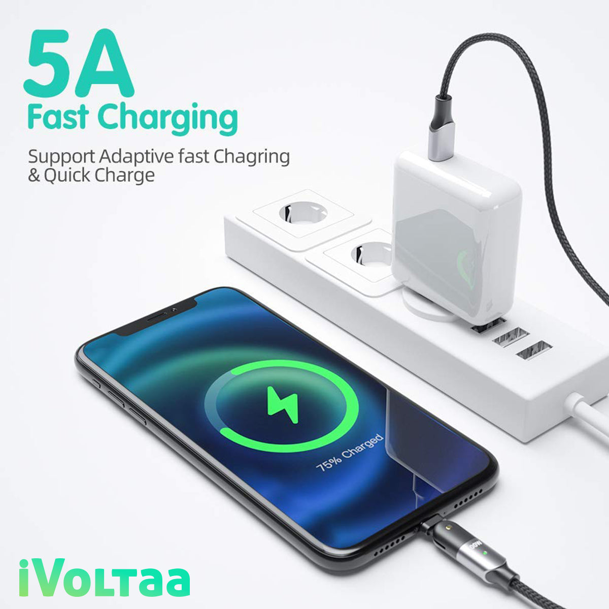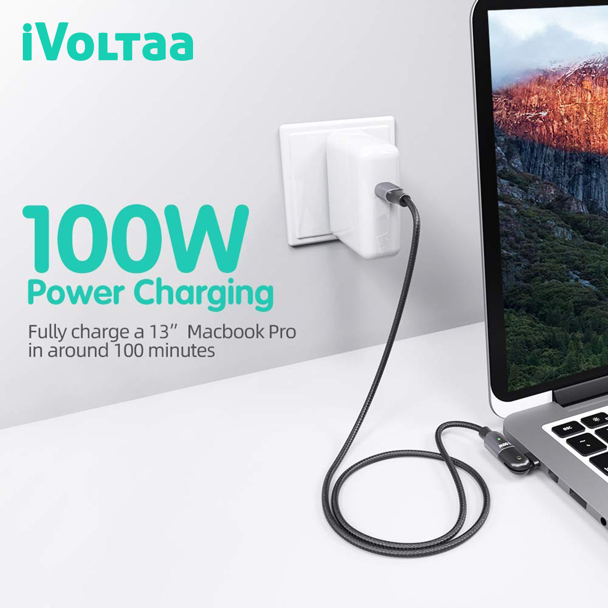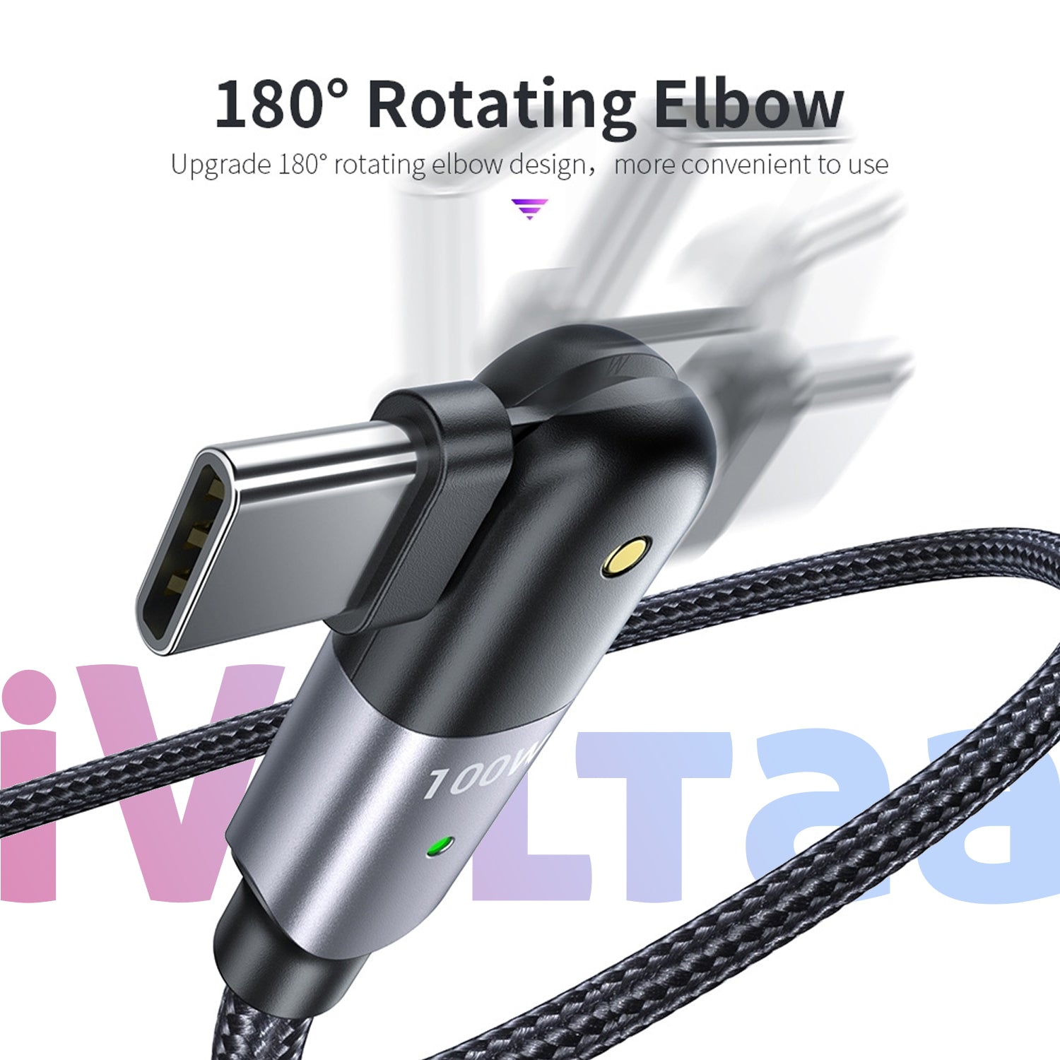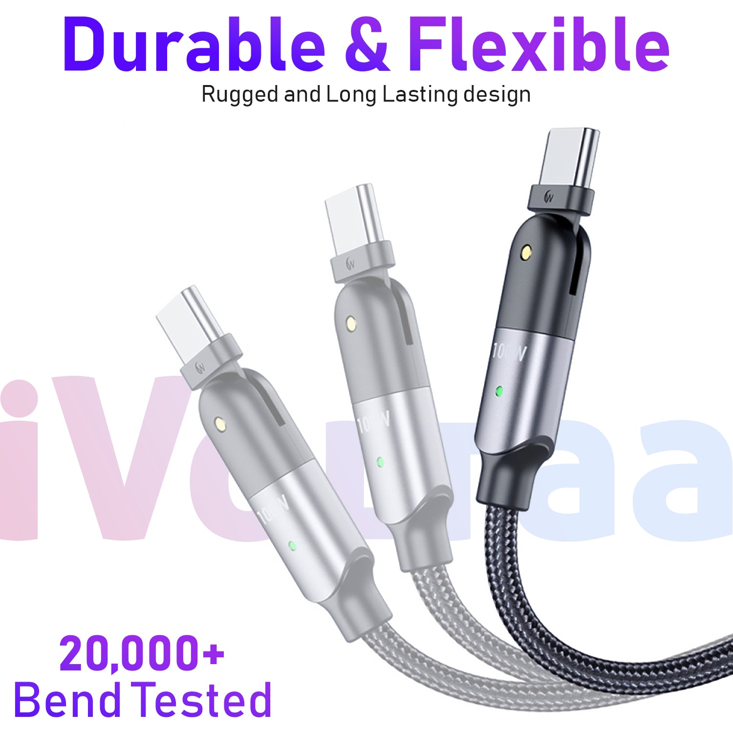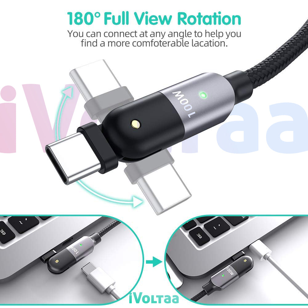 iVoltaa USB Type C Cable 5 A 1.2 m PD 100 Watts 180 Degree Rotation (Compatible with Mobile, Tablet, Laptop, Computer, Camera, Black, One Cable)