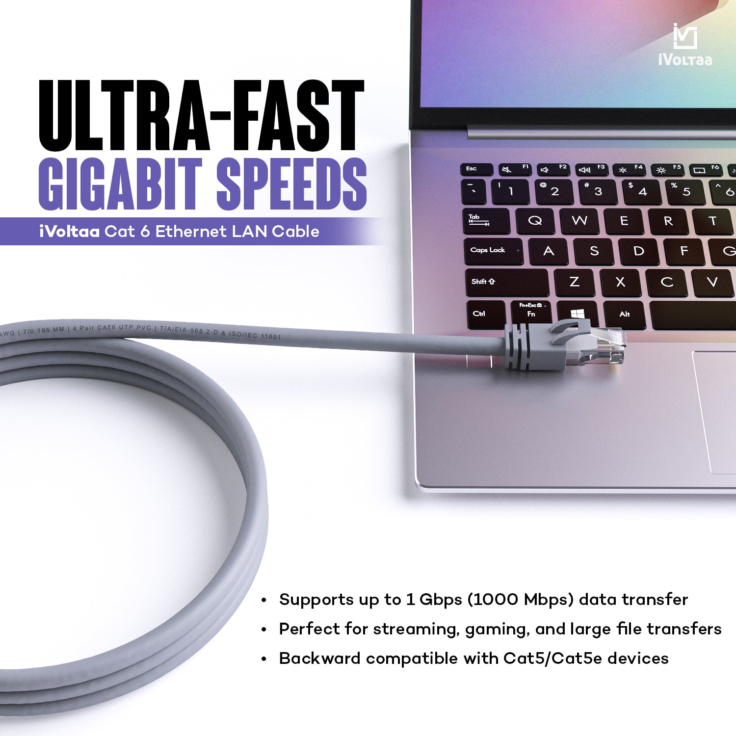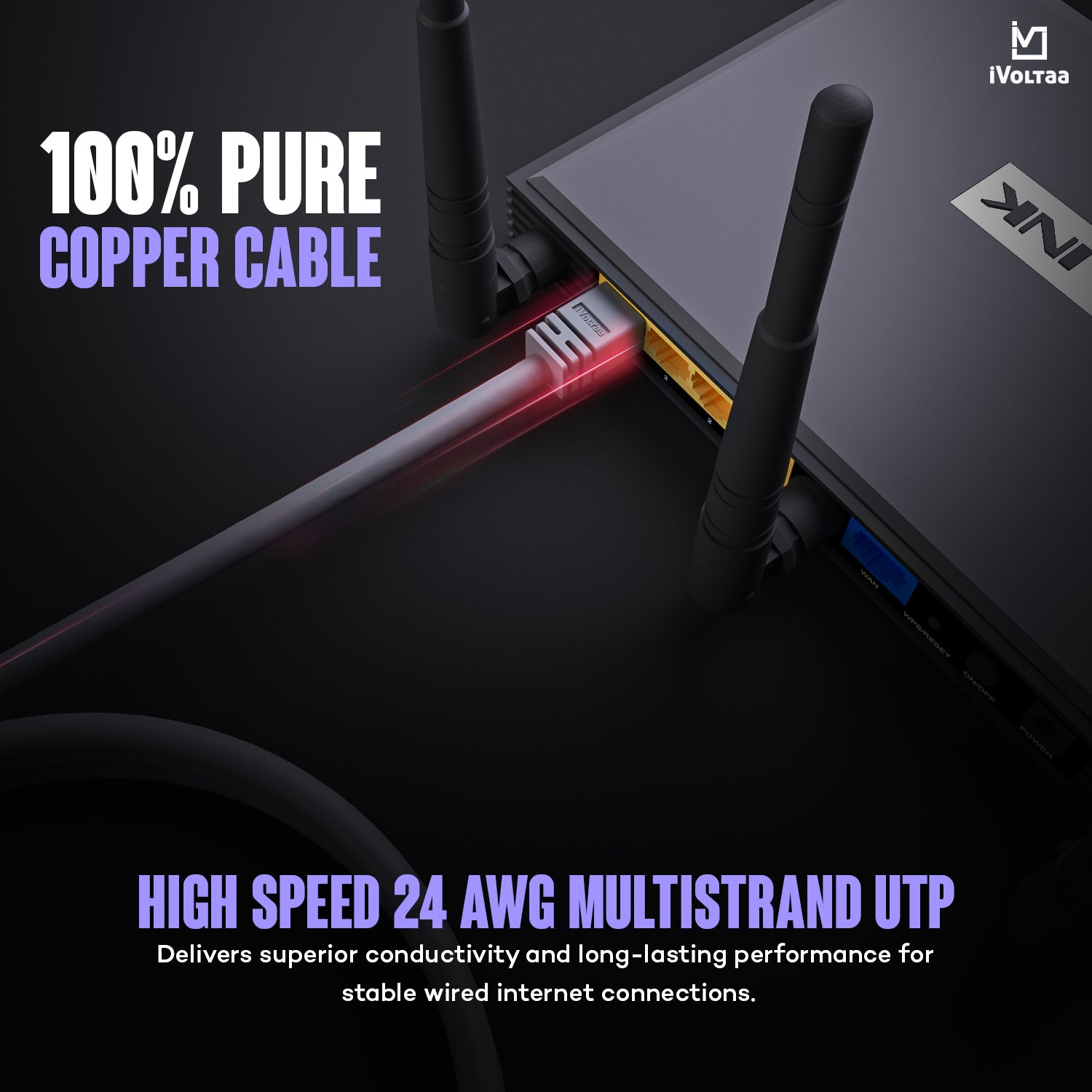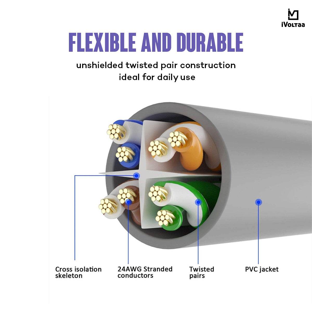 iVoltaa Cat 6 Ethernet LAN Cable | 100% Pure Copper | High Speed 24 AWG Multistrand UTP
