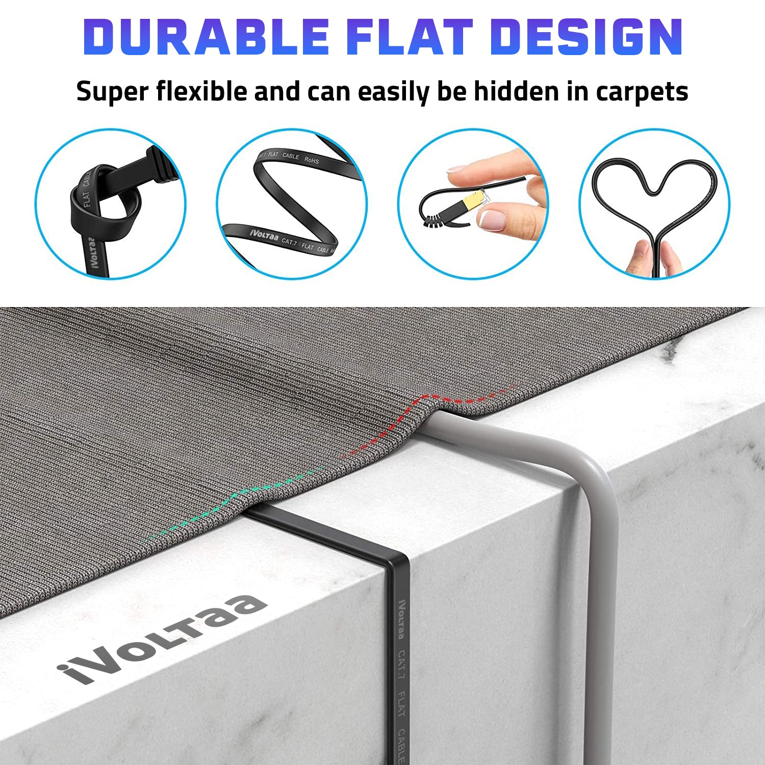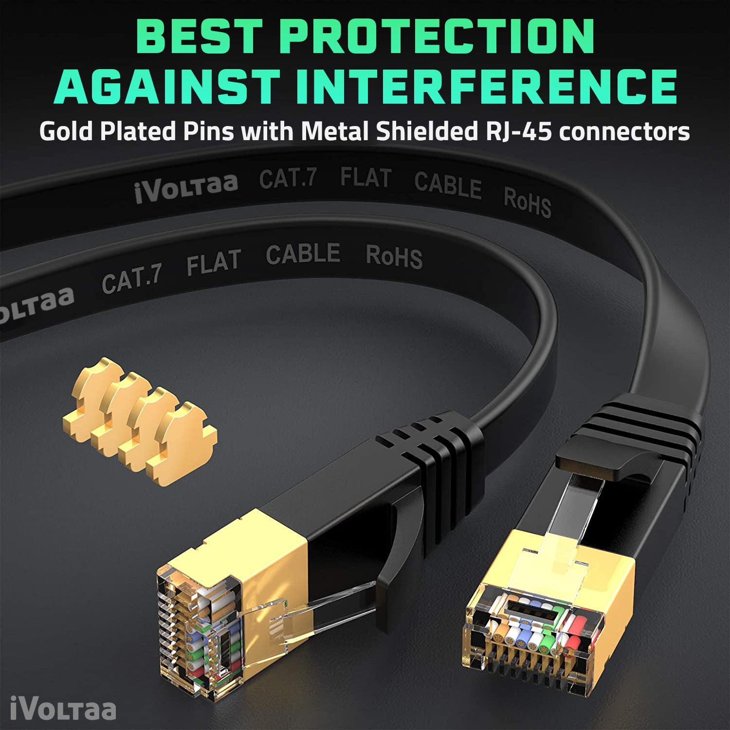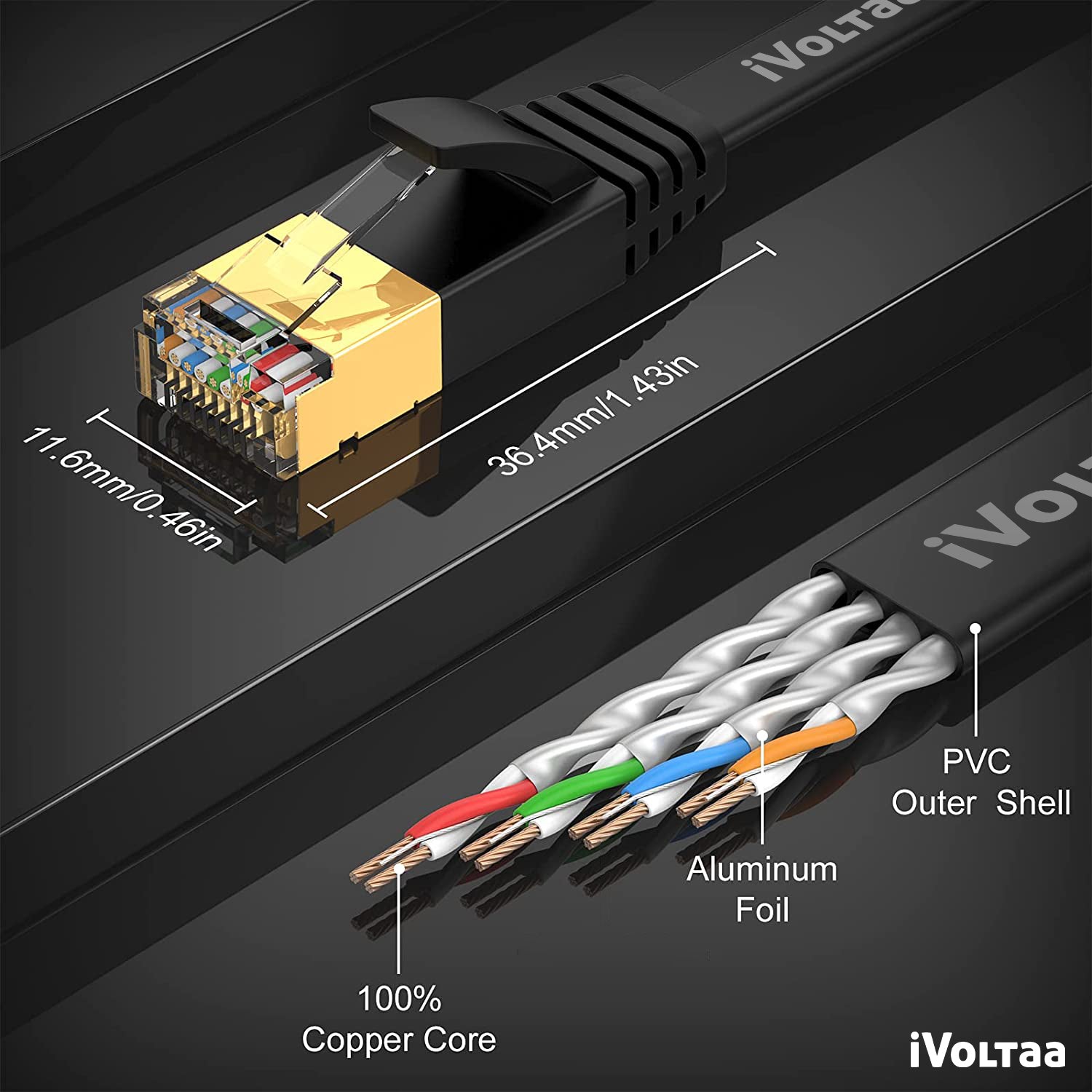 iVoltaa Bare Copper Cat7 Giga Shielded STP Flat Ethernet Networking Cord Patch Cable