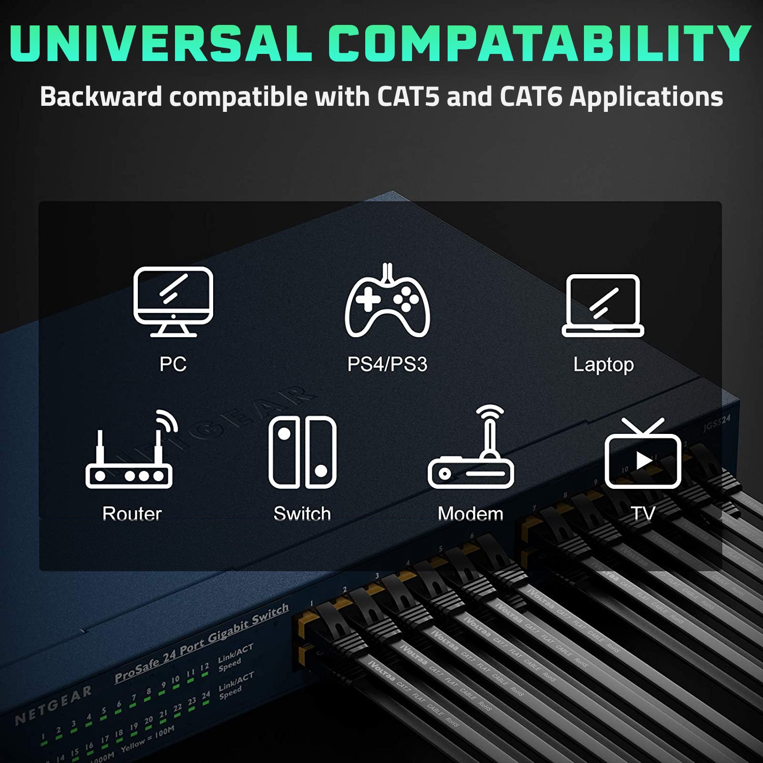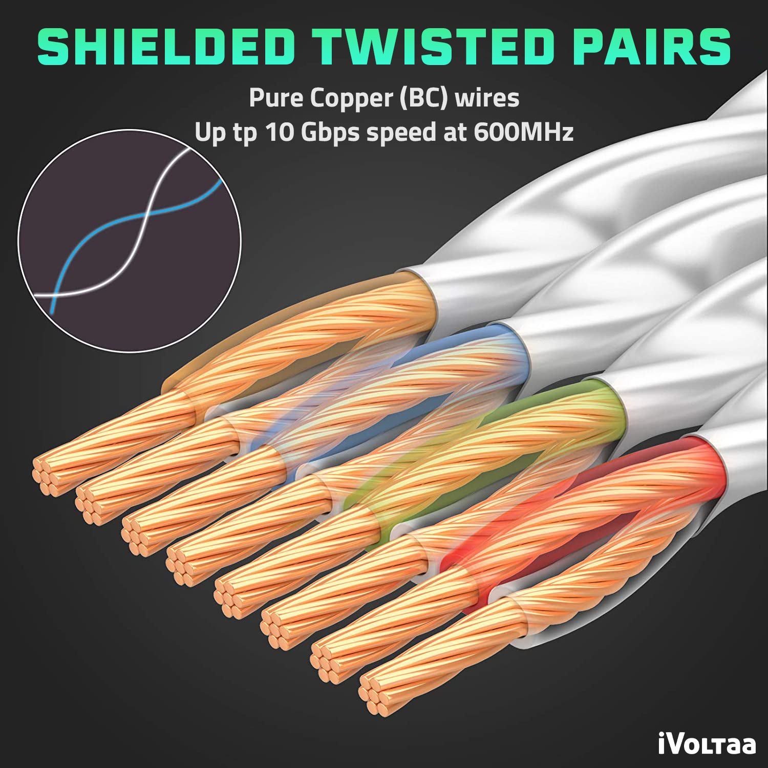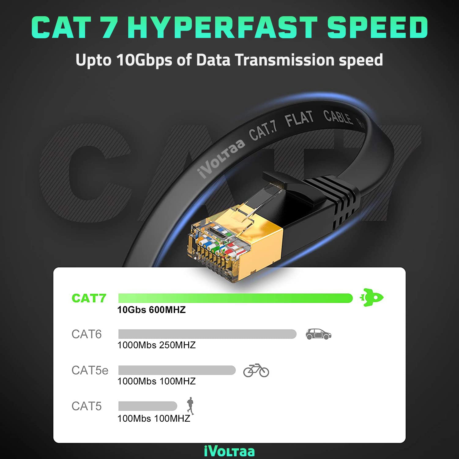 iVoltaa Bare Copper Cat7 Giga Shielded STP Flat Ethernet Networking Cord Patch Cable