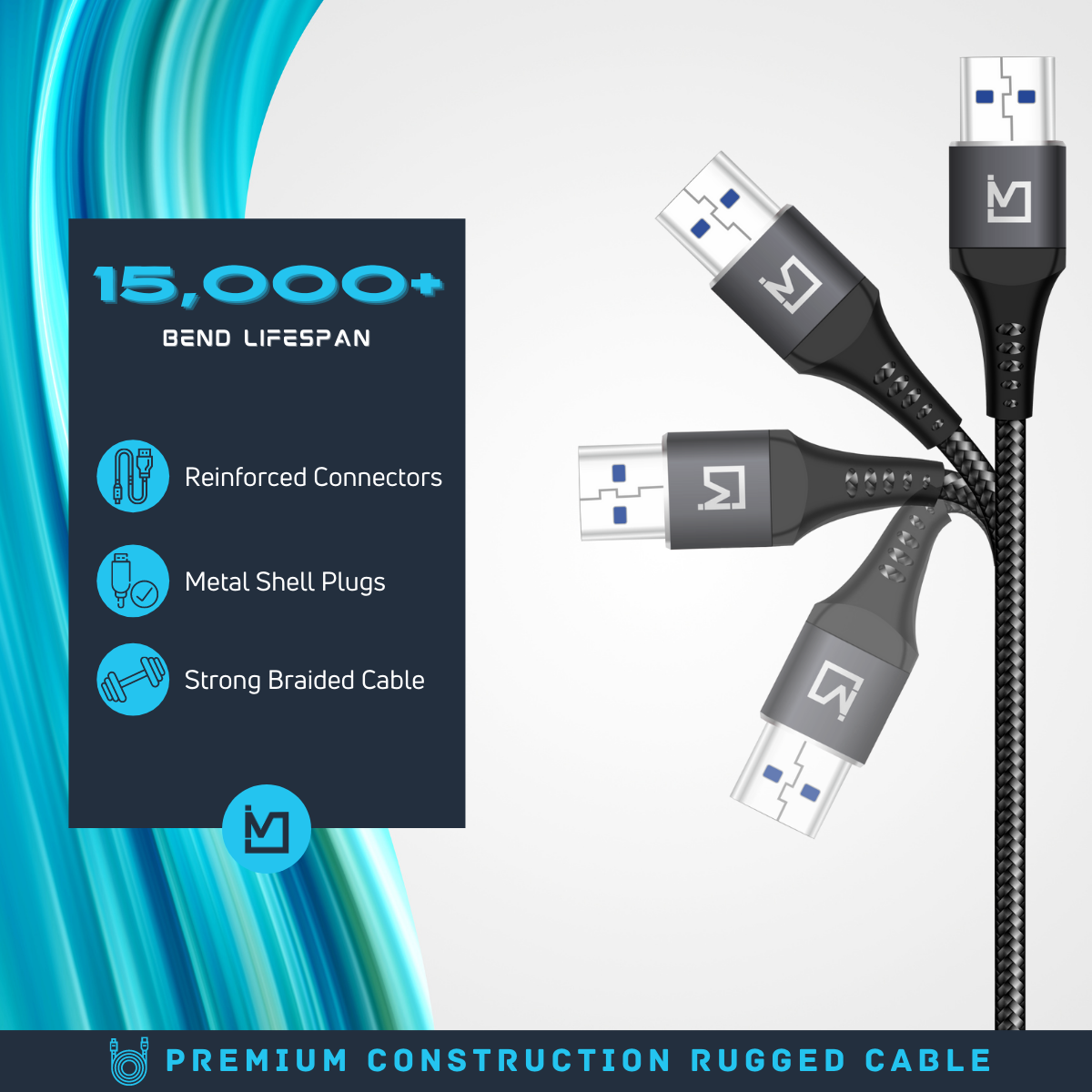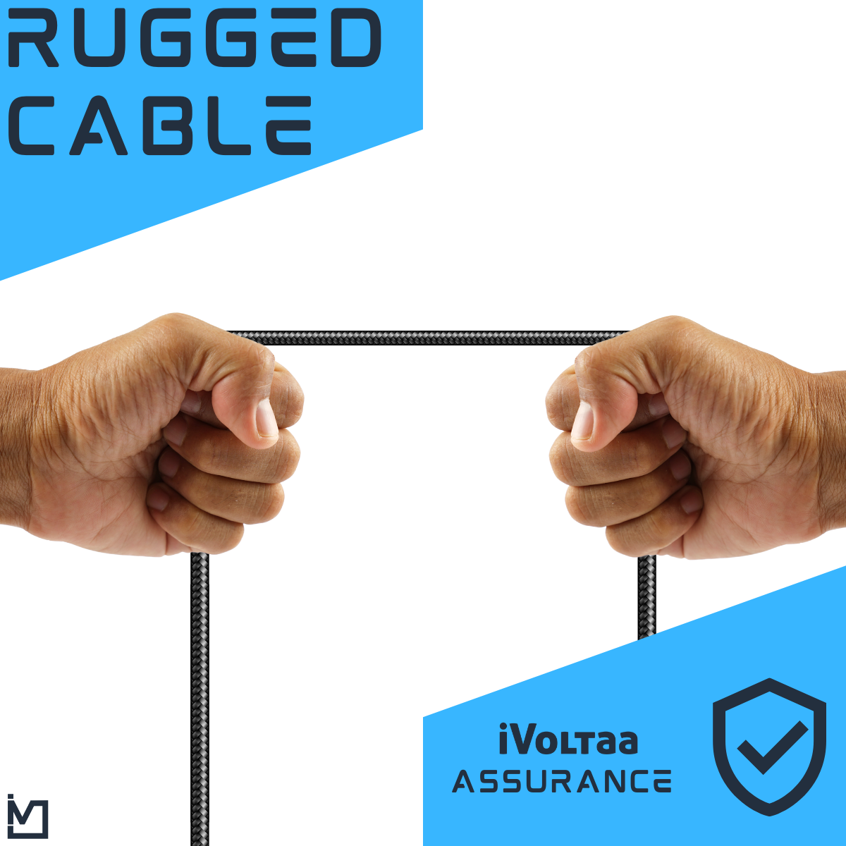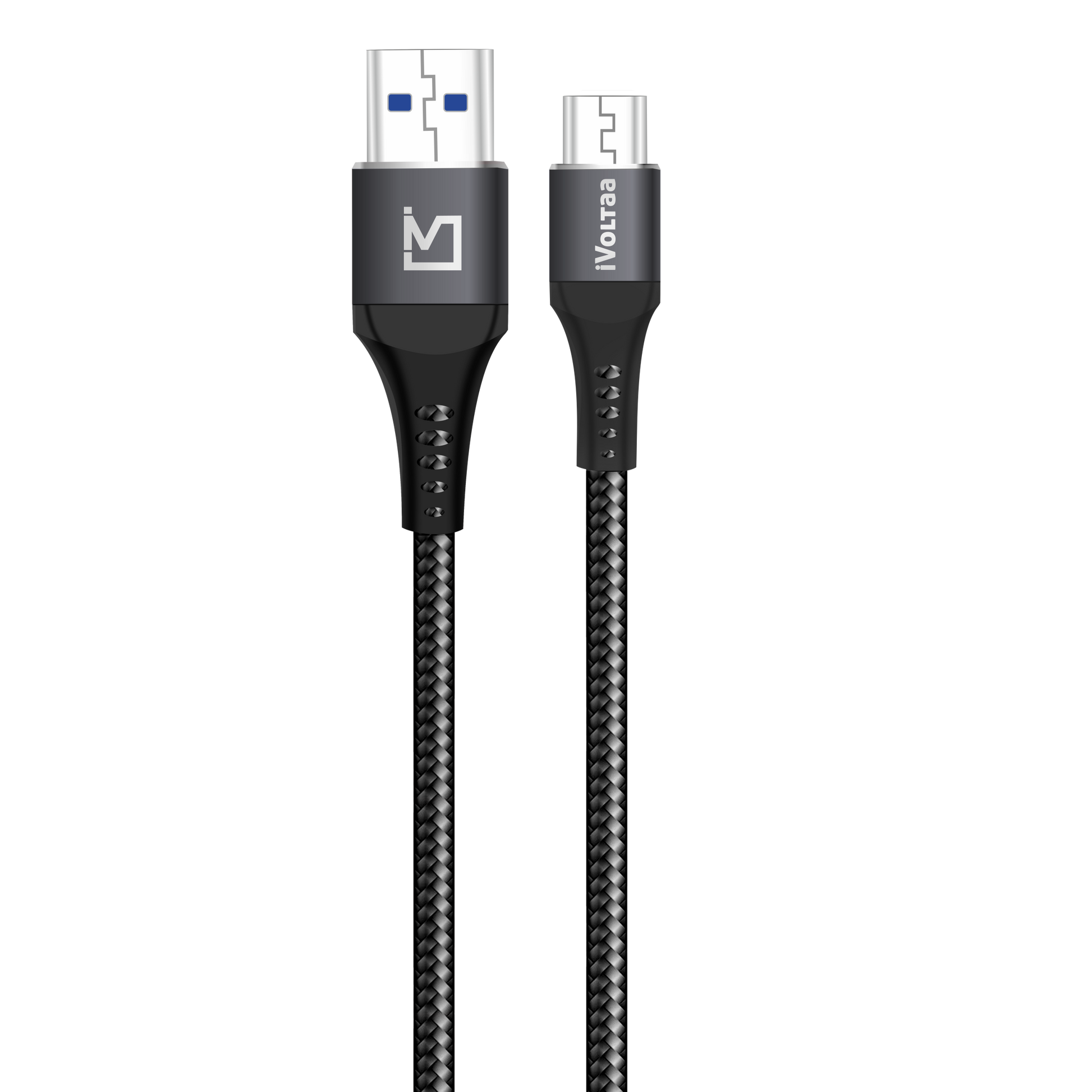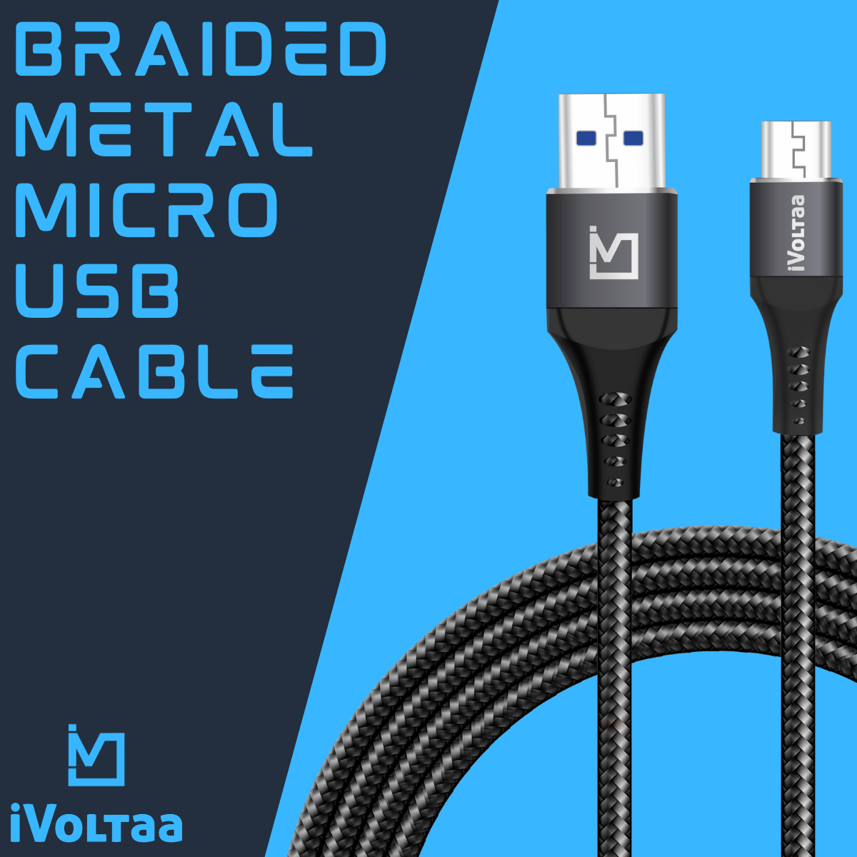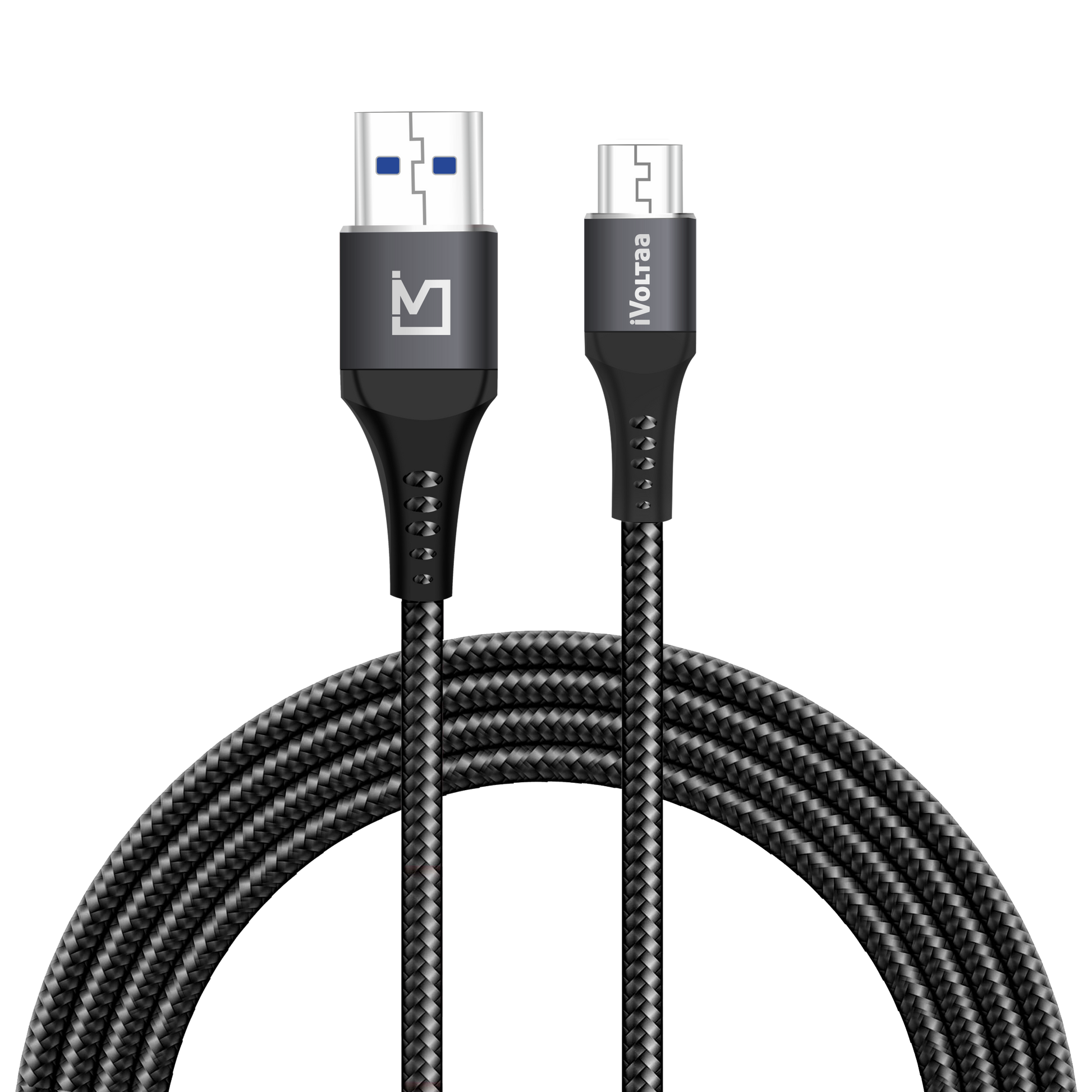 iVoltaa Braided & Metal 4A Sync & Fast Charge Micro USB Cable (1 M / 3.3 Ft. Long - Black)