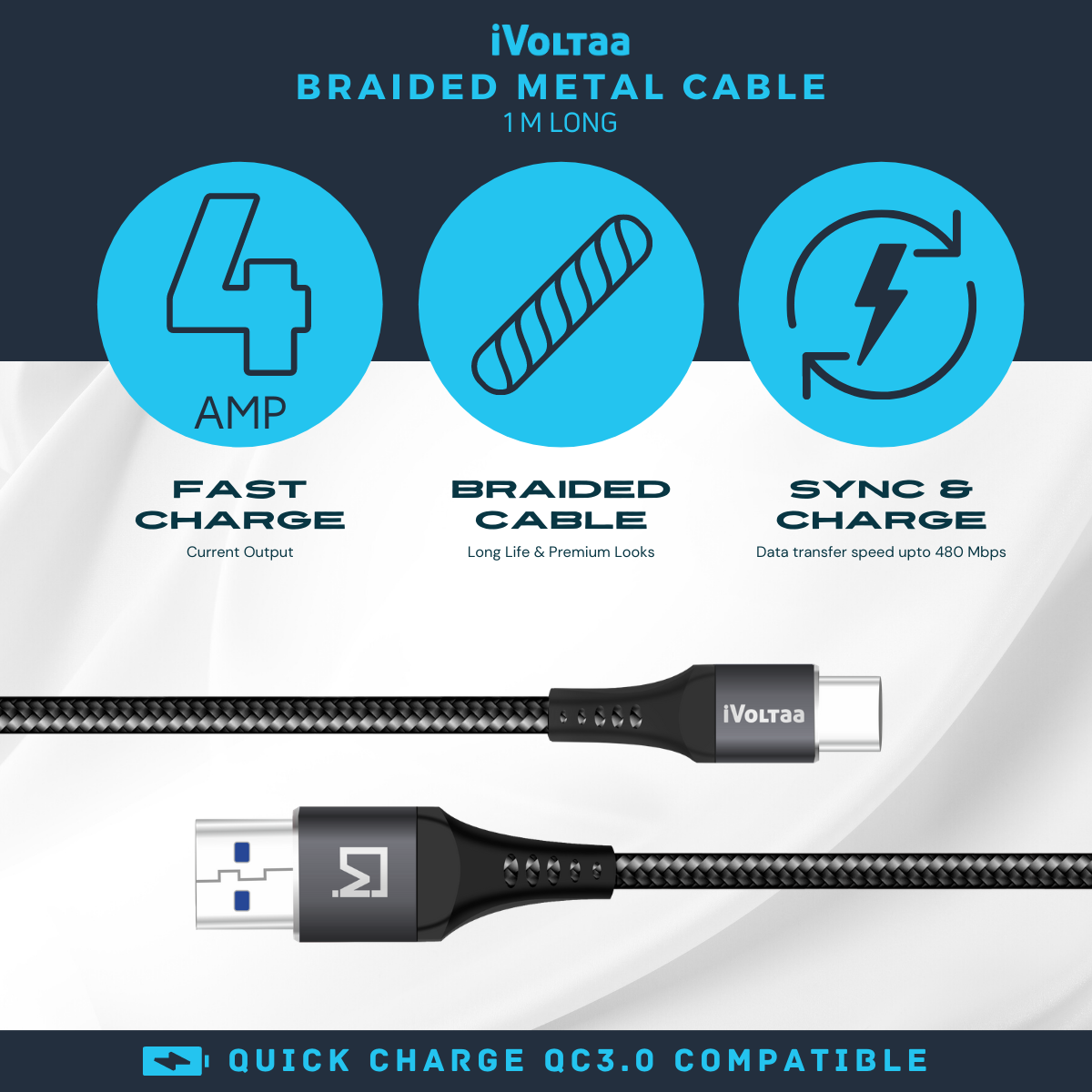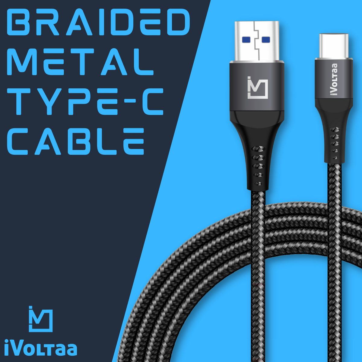 iVoltaa Braided & Metal 4A Sync & Fast Charge Type-C Cable (1 M / 3.3 Ft. Long - Black)…