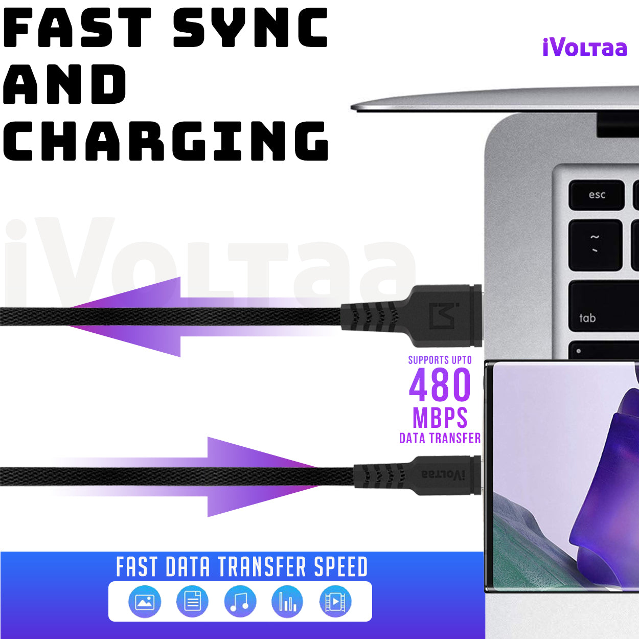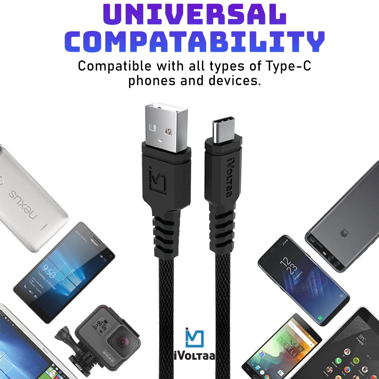 iVoltaa Fishnet Design Sync & Fast Charge Type-C Cable (1 M / 3.3 Ft. Long - Black)…